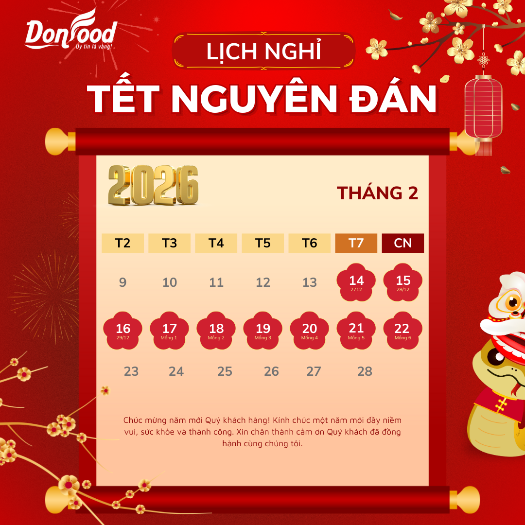 - Thời gian Đặt Hàng Lẻ: Quý khách hàng lẻ nên chốt đơn trước 26 Tết (khoảng 13/02/2026) để chúng tôi kịp thời vận chuyển và giao hàng đến tận tay.