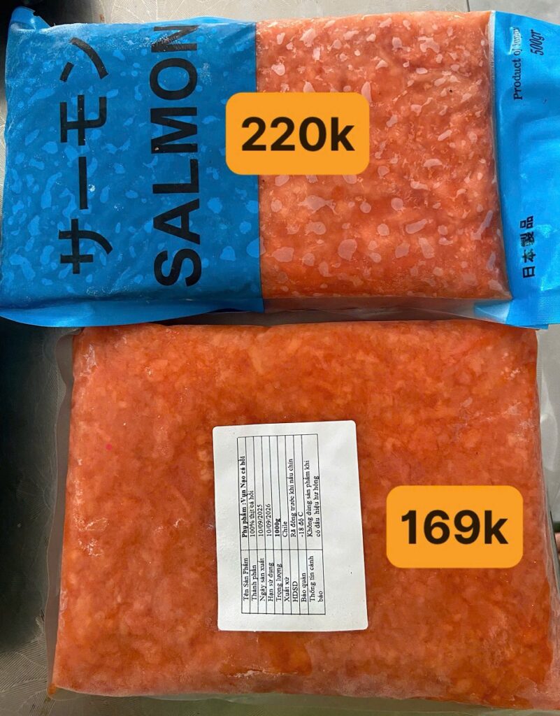 | Vụn nạo cá hồi | Thịt cá nạo vụn, lý tưởng làm ruốc, cháo, viên cá | 169.000 VNĐ/kg |